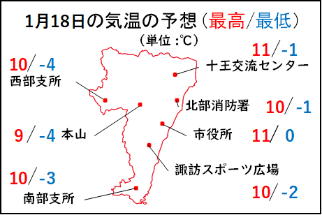 市内の18日の最高気温と最低気温の予想