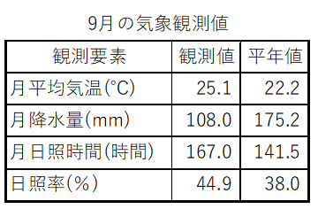 ●9月の気象観測値