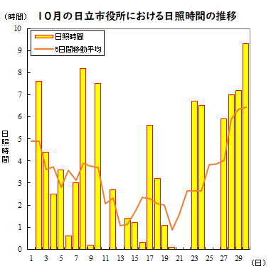 ●日立市内と水戸の10月の気温と降水量の観測結果
