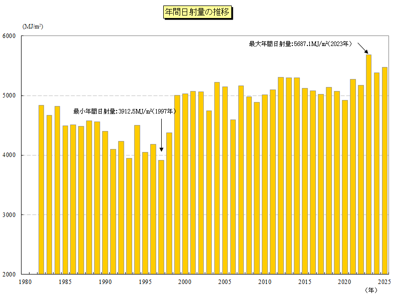 統計:年間日射の経年変化