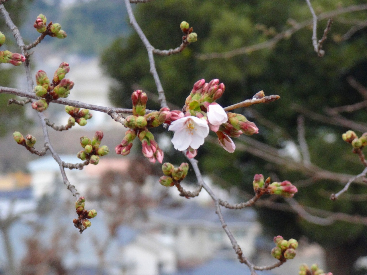 かみね公園 最近10年間の平均の開花日より1日早い、昨年より4日早い開花。